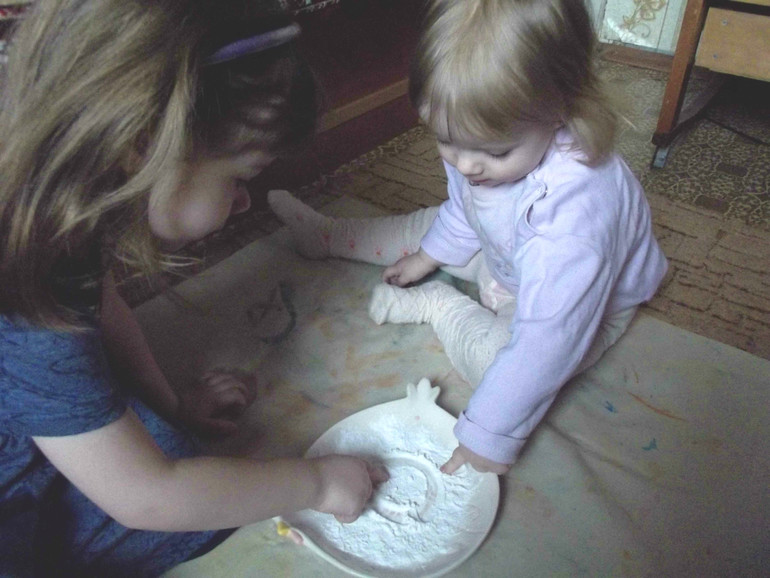 Задание 7.Рисование на манке.У нас манки не оказалось,рисовали на крахмале.