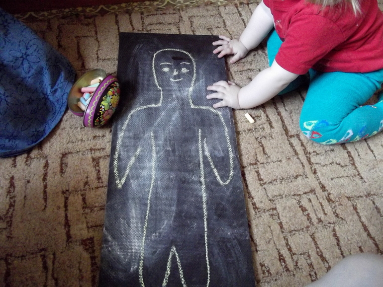Задание 2 . Нарисовали человека на доске и раскрашивали его .