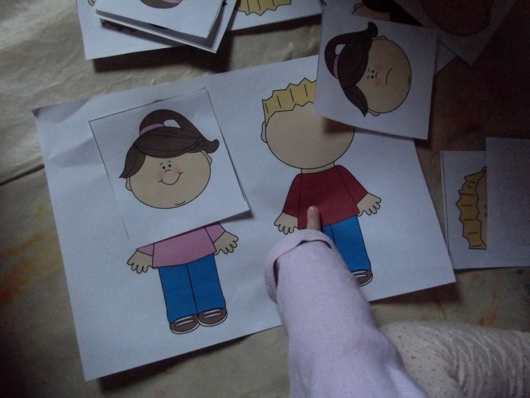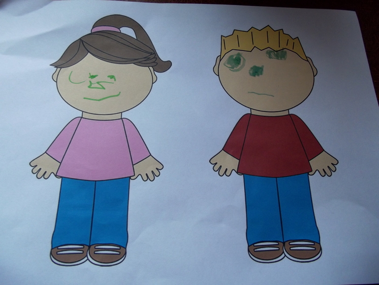 Прикладывали лица к фигуркам мальчика и девочки . Заодно снова повторили по ним части тела.Нарисовали им лица.