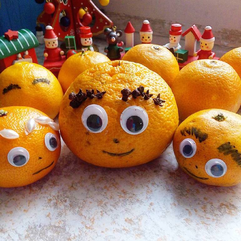 Многие делали ежиков из мандарина и гвоздики? Если нет, то обязательно сделайте. Правильно они называются - памандеры, традиционное рождественское украшение дома в домах Англии. А какой аромат! Множество МК по их правильному изготовлению есть в интернете, я же просто выдаю детям мандарины и гвоздику, а украшают они сами. Кстати, неплохая тренировка для мелкой моторики рук и развития воображения.