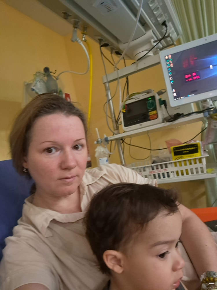 Пару часов мы были в большой палате/зал интенсивной терапии, судя по количеству оборудования, примерно на 8 мест. Сначала мы были одни, потом привезли мужчину с приступом астмы и поключили к нему много всего. Через час нас отвезли в детское, как я понимаю в палату скорой помощи , т.к .дети с совершенно разными проблемами, мы с Райаном были в одноместной палате , а рядом была палата уже с 3мя детьми и родителями, там у кого-то была рвота.
