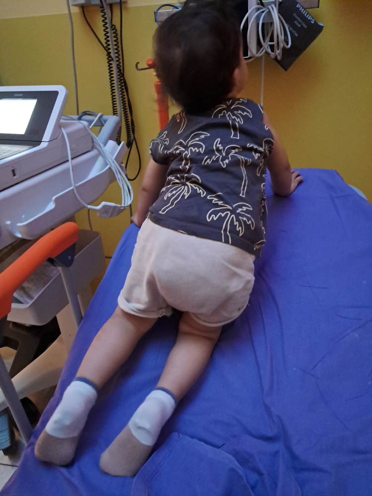 На осмотре дал себя осмотреть, посвятить в нос ,уши, глаза, брал из рук врача предметы , реагировал активно, покушал)) Нас отпустили домой.
