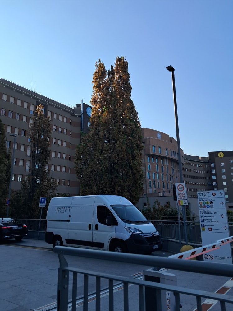 На улице мы рассмотрели, куда нас привезли, огромный госпиталь-район San Raffaele. Очень красивый , современный , множество корпусов, подземные кафе, магазины и выход в метро.