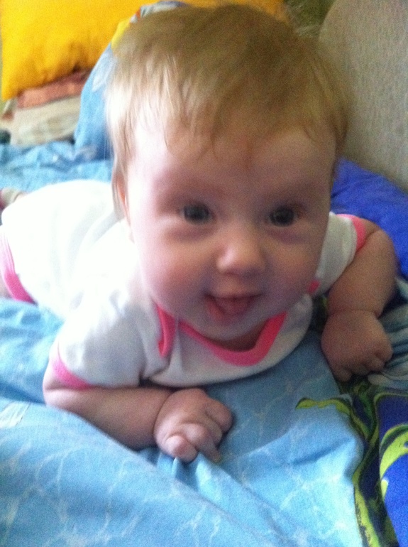 АнютаПервый наш мини-юбилейчик. Сегодня ставили акдс и полиомелит. Анюта очень плакала, очень. Потом уснула сразу. Жду будет ли реакция. Врач сегодня был угарный. Все нам сказал на глазок))) вес-6000. Мерил нас в бодике и памперсе. Поэтому решили что 6000. Рост тоже слегка вытянул ногу и решил, что 60. Хотя на мой взгляд больше. И пеленка размером 60*60 нам мала. Голова -39, грудка 40. Получается набрали мы всего 450 гр. но в рост много пошла. А так Анюта очень активная. Ворочается с бока на бок, на животике хорошо держит голову и грудку, слюней у нас ужасно много. Любит сосать свои пальчики, кушаем титю. Не любим все-таки коляску. Никуда с ней не выйти на коляске. На игровом коврике засыпает. И сегодня первый раз стала осознанно тянуться к игрушкам. Схватить не может, но ручкой трогает и толкает. Очень любит гулить, разговаривает со мной часто. Любит Полинку. На ночь раньше 12 ее не уложить((( а я люблю пораньше лечь спать. Ну вроде основное все. Пару фоточек. Качество телефонное((