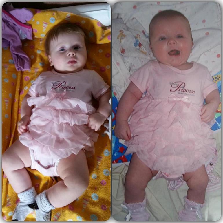Очень разные с лица. Тут моим девочкам по 3 месяца. Ну Полинке может недели на 2 побольше