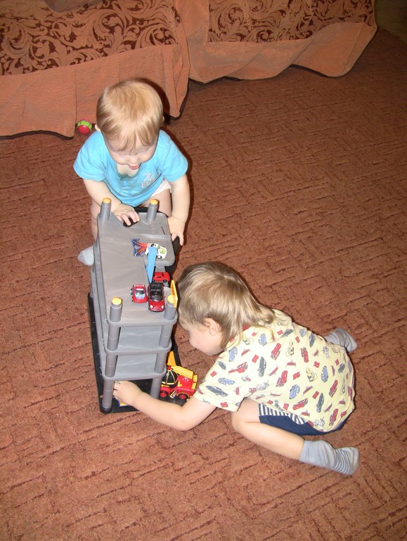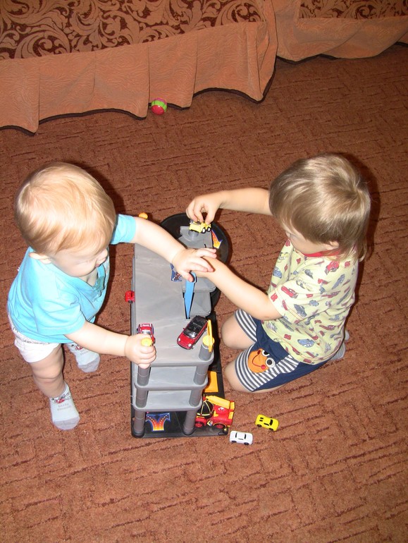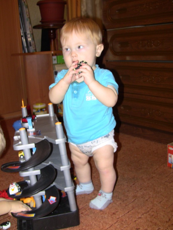 Женя вчера попросил достать парковку. В итоге играли оба ВЕСЬ вечер. У Сашки горели глаза, тянулись руки и чесались зубы. В порыве Шуш научился стоять, ходить и разве что не бегать...