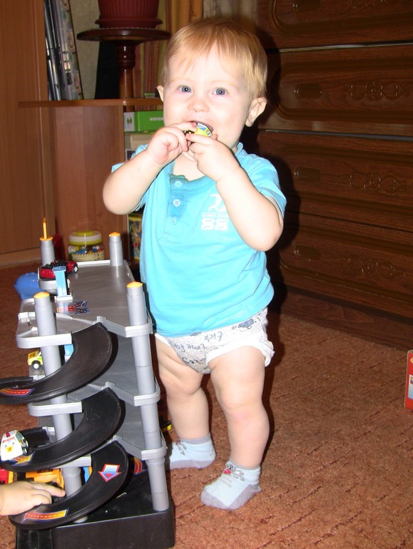 А потом мы пошли гулять на площадку. Там уже гулял папа с двумя сыновьями - один как Жек, второму около года. Папа с нами никак не кантачил, кроме "вы сандалик потеряли! - мы сандалик потеряли..." и "Игорь, будешь с мальчиком играть?". Но когда я спросила Женю, что за машина проехала, и Женя сказал, что черная тойота, папа не выдержал. "Он у вас уже марки по значку определяет?!" - возопил он, новыми глазами посмотрев на своего сына. "Да он три штуки знает", - отмахнулась я. "Наш только по цветам называет..." - сильно задумался папа о смысле бытия.