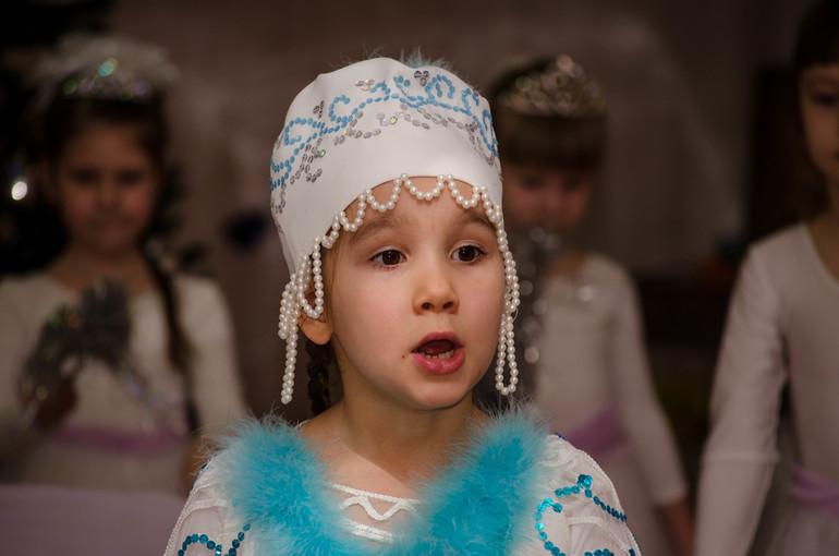 Готовится в Снегурки!Мечта её, но когда роль дали и начались репетиции..размечталась о роли обезьянки.Девочка такая девочка.Репетирует и песню(Снегурка) и танец(обезьянка).Интересно!