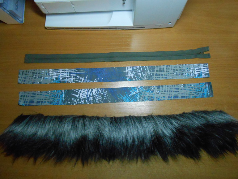 Берем полоску меха, 2 планочки для ножки и молнию (я стараюсь на кап ставить спираль №3 или в крайнем случае №4 или разъемную потайную молнию, эти молнии практически не заметно при креплении капа.
