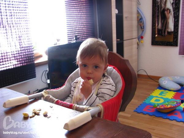 его постоянно снимать надо, чтобы постирать. И кто придумал тканевые стульчики для кормления ?! сейчас проверила, плотно прикручен, никуда не денется :) миксанул сынок, два дня на маму похож, два дня на папу :)))