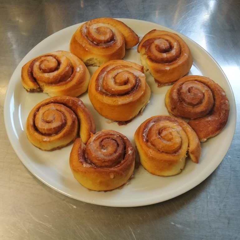 Сегодня было прекрасное настроение, и по этому поводу я устроила пекарню на кухне))) в 7-30 утра уже был готов банановый кексик, что отправился прямиком на буфет на завтраки. Потом испекся крамбл с клубничным вареньем, замесила тесто на синнамоны и сделала песочное тесто для базы чизкейка. Показываю последних подоспевших из духовки - булочки с корицей, очень удачный рецептик теста, хотя по началу показалось очень тугое, но расстоялось хорошо, раскаталось еще лучше, а в готовом виде вообще вкуснятинка :) вечером рецептиком поделюсь ;)