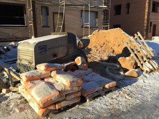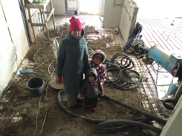 Там нас ждал сюрприз - сделали стяжку на 2 и 3 - этажах, на первом не успели - морозы подкосили рабочих )
