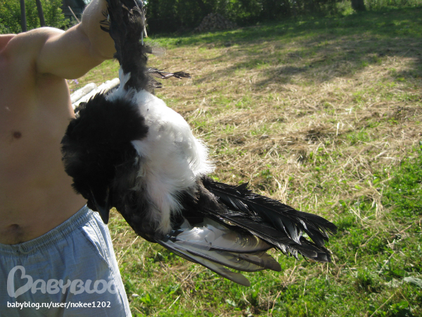 2009. На фото, конечно же, не я держу птицу))) Эту птицу я протащила под капотом у радиатора почти пол-страны, от Архангельска практически до Владимира, 1250 км!! Я когда ее сбила (ну, она сама бросилась под колеса), была уверена, что она осталась на дороге, даже позже на заправке посмотрела на капот, все ровно-чисто... А нет, она жарилась на радиаторе....