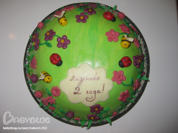 Праздники, подарки, ОПВот такой тортик был нам сделан. Конечно, я ожидала немного покрасивее (забыли еще бабочек сделать, как я просила), но, надеюсь, на вкус он будет замечательный!!