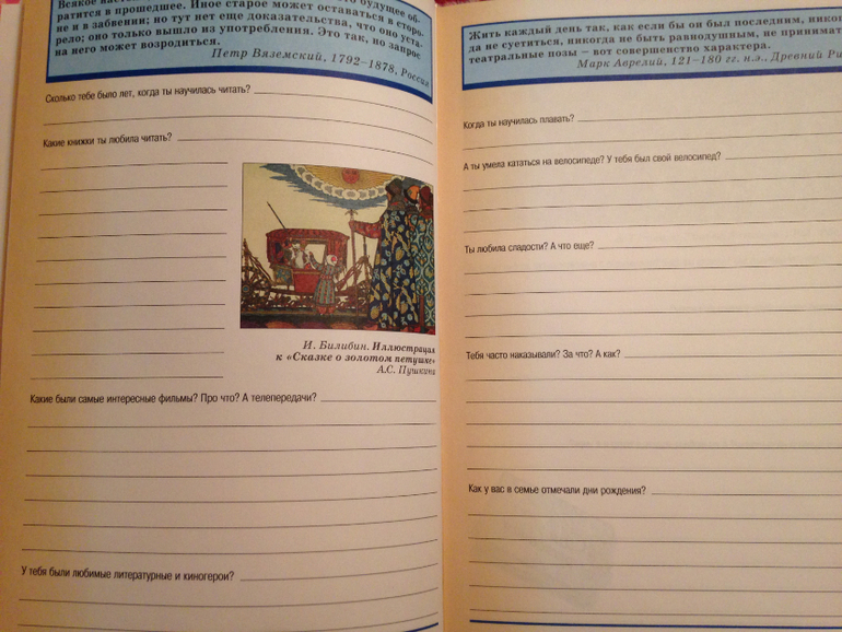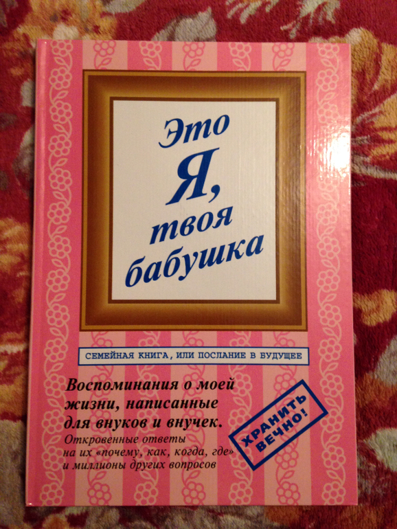 Купила книгу дл своей мамы, чтобы она заполнила ее для Лизы и Вики. Потом решила попробовать предложить свекрови (просот не была уверена, что она заинтересуется), та сначала не очень хотела, я сказала ей подумать, вроде согласна уже)) Теперь и для моей мамы еще надо покупать.