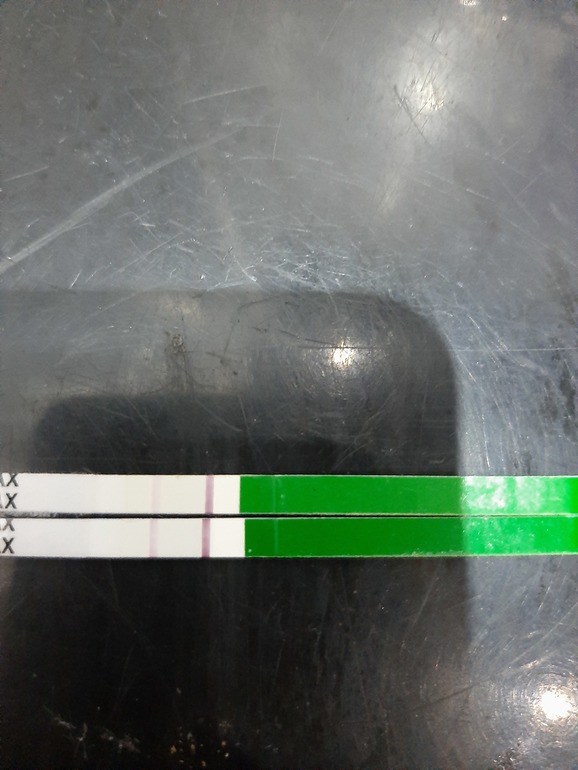 Решила попробовать потестить,до этого никогда не пробовала.Помогите разобраться , девушки,Цикл 27 дней.КД были с 19 по 23. Вчера сделала тест(верхний)-10 дц.Полоска-яркая.Сегодня сделала(нижний)-11дц-полоска бледная.Что это может значить?Планируем ребеночка,все никак не получается,у мужа от прошлого брака двое детей,у меня была Б,8 лет назад,выкидыш в сроке 8 недель.В прошлом году делали лапару и там целый букет.Но об этом как-нибудь в др.раз.Долгая история(