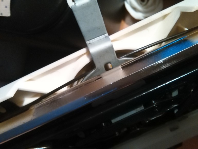цепляется за болт кт на черной панели... открути болты кт на светлой железки и сними корпус!