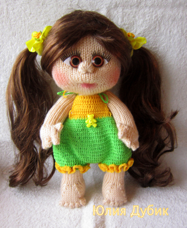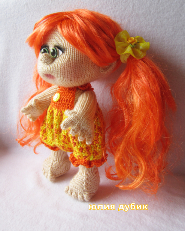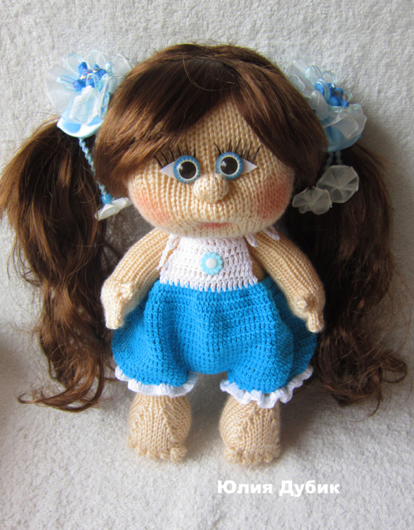 Пупсяшка связана на заказ...по описанию Марины Голден...пряжа-акрил,глазки-стеклянные,волосы-паричок... рост 25 см...одежда-съемная,можно делать прически) стоит с опорой,сидит-сама)