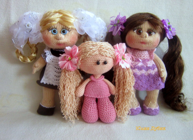 Давно не писала) без дела не сижу-вяжу девчонок) большие ростом 28см....глазки-стекло, волосы-парички...можно делать прически) одежда съемная...скоро школа-заказывают школьниц в подарок первоклашкам) описание только на сайте Амигурами...