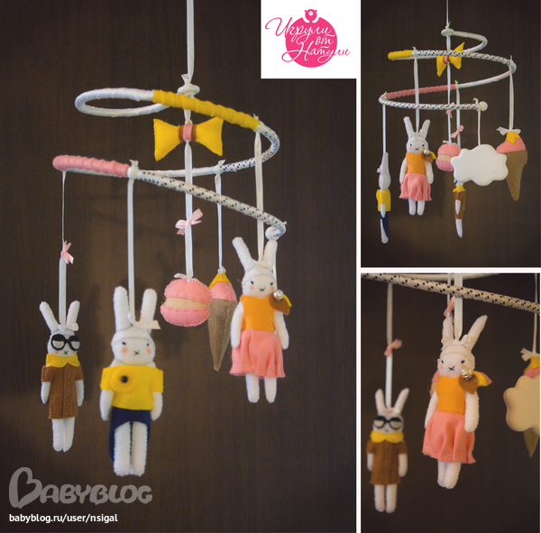 Представляю один из последних мобилей. На него меня вдохновил модный персонах Fifi Lapin. Этот мобиль для юной модницы, маленькой