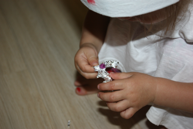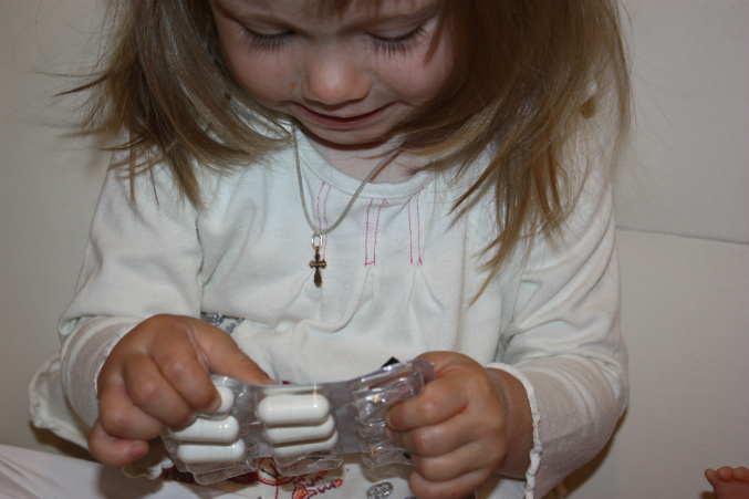 Дааа, все больны, срочно даем всем витаминки. Тут мы учились разворачивать витаминку из фольги. Потренировали пальчики. Не так все просто было, даже зубами пробовали.