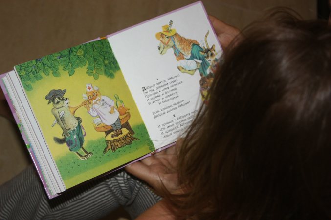 Утро началось с книжки Айболит, Настя очень переживает , когда мы читаем про зайку,как ему перерезало ноги, чуть ли не плачет. Обратила внимание, какой доктор добрый, что он всех лечит. Что у него есть чемоданчик с инструментами и лекарствами.