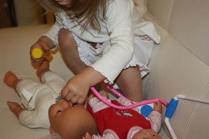 Даем куклам таблеточки , витаминки, слушаем сердцебиение