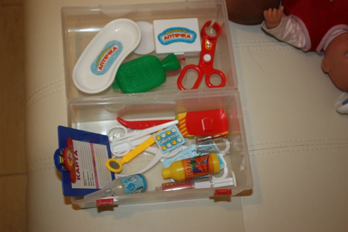 Ирина, спасибо! Теперь в нашей семье есть доктор)! Расширили пассивный запас слов - укол, шприц, врач, больница, витамины, таблетки, микстура, градусник. Вообщ было очень интересно так поиграть.