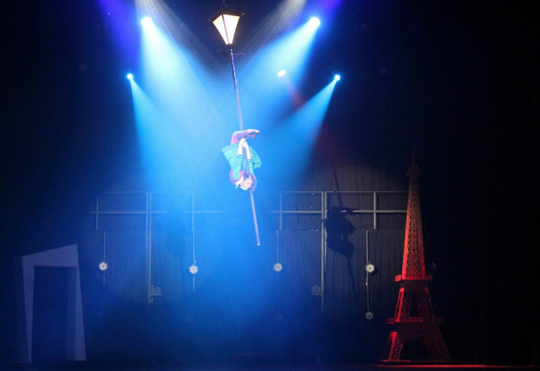Или вот танец на пилоне... точнее, на шесте... да нет же, это самый настоящий летающий фонарь! Кто-нибудь раньше выступал в паре с фонарём, отрицая действие гравитации и прочих законов физики? Я не видел...