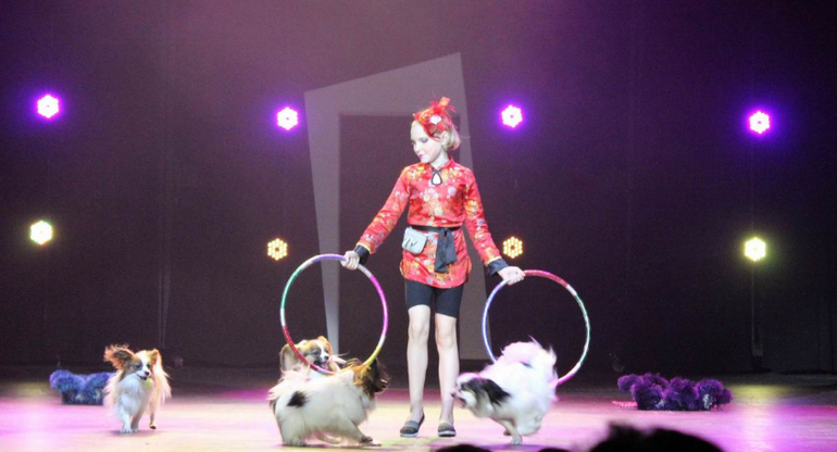 Ну, а когда на сцену вышла эта крошка (Александра Богданчикова, очевидно, продолжает дело цирковой династии), запищали уже не только малыши - пускай даже выбранная порода собак значительно уступает умом и сообразительностью вымышленным говорунам.