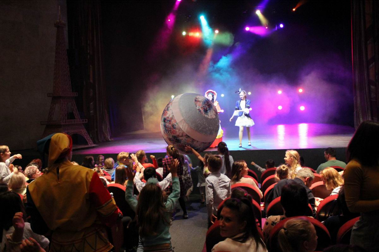 А также танцами - не между рядами кресел, конечно (тесновато там, опоздуны категорически не приветствуются!), но из центральных проходов малышню на удивление слабо гоняли, хотя там же время от времени приходилось прогуливаться юным актрисам Ирине Ухановой и Алине Шемонаевой, продвигающим вперёд романтически-фантастический сюжет.