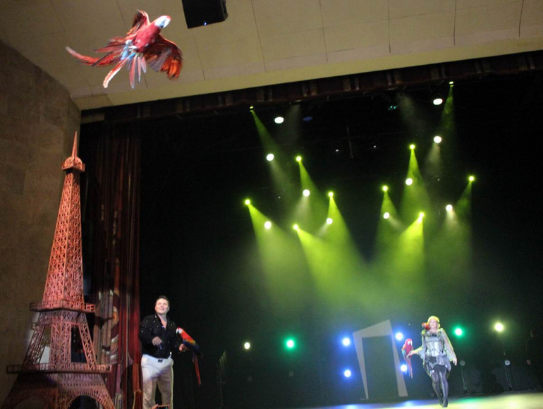 Попугаи, накатавшись с горки и накрутившись на кольцах, гордо рассекали пространство над зрительскими рядами.