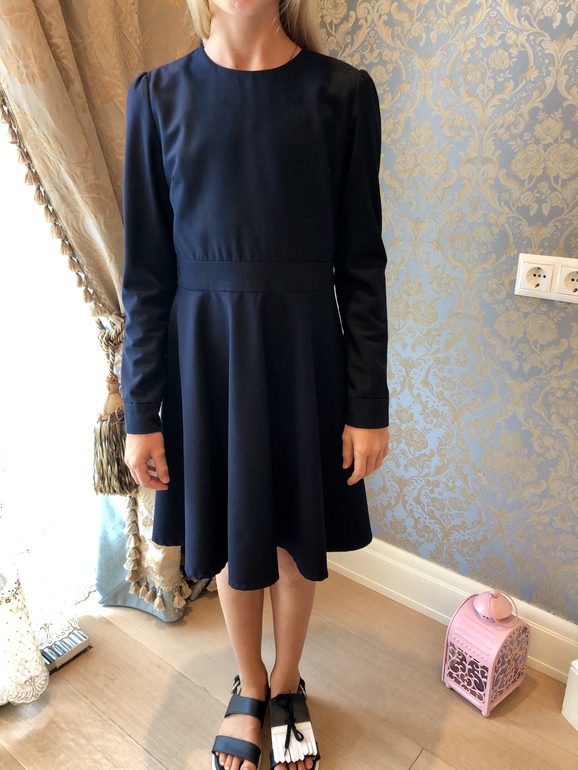 Платье приталенное,темно-синего цвета.Состояние нового!Надели 2 раза.Размер 10-12 лет(158 рост)
