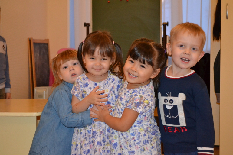 Вот они красотки в одинаковых платьях))) К ним снегурочка приходила и подарки принесла,думаю это и помогло не бояться дед мороза)