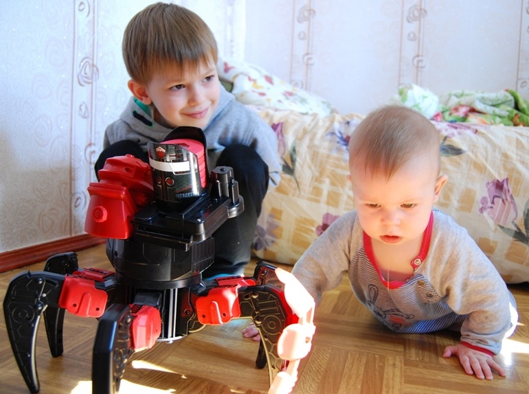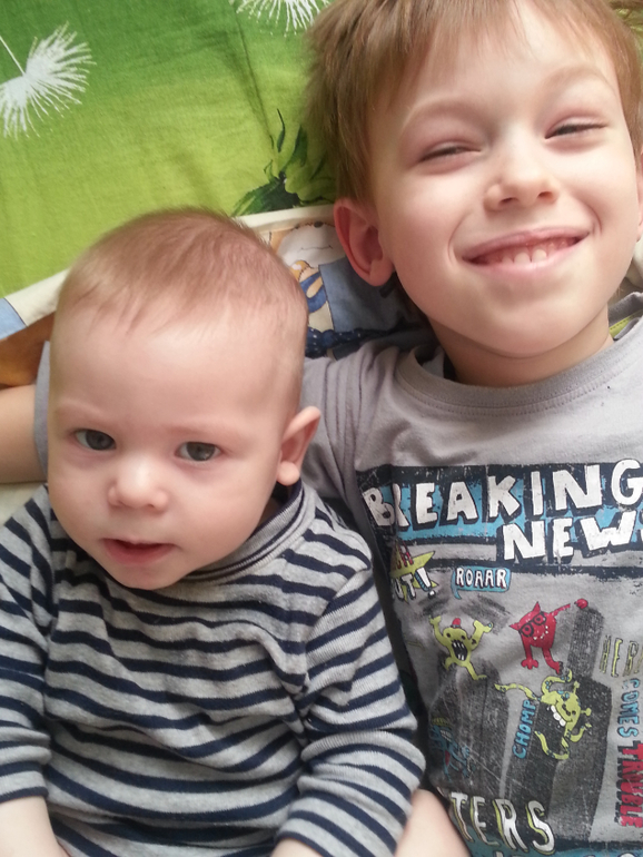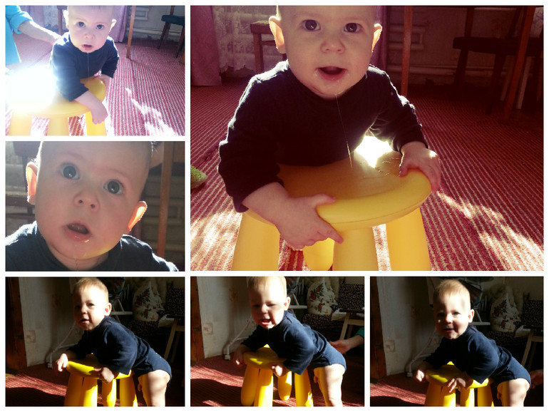 Вчера( 26.03.2014) уехала моя сестра,которая гостила унас неделю и видно с расстройства Захарик сел) Всю неделю его носили на руках и практически не спускали на пол. А тут оставшись наеде с матерью у которой куча дел и которая если честно малость расслабилась за эту неделю ребенок прямо таки расстроился. Весь день хныкал и нечто не могло его успокоить не брат, не любимая зубная щётка. И вот отправился он на пол громить железную дорогу которую брат собирал, ну и полз полз, резко остановился и бухнулся на попу от неожиданности сам замер, посидел минутки 3 повернулся на бок и пополз. Ну а сегодня уже прямо таки с утра тренируется чуть проползёт сядет, посидит дальше ползёт. Ну и сегодня дополз до кресла и встал ( в полный рост) Недельки 2-3 он вставал буквой Г, ну то есть,если я лежу на кровать он подползает на живот опирается и встаёт, но это я как то за настоящий подъём не засчитывала)