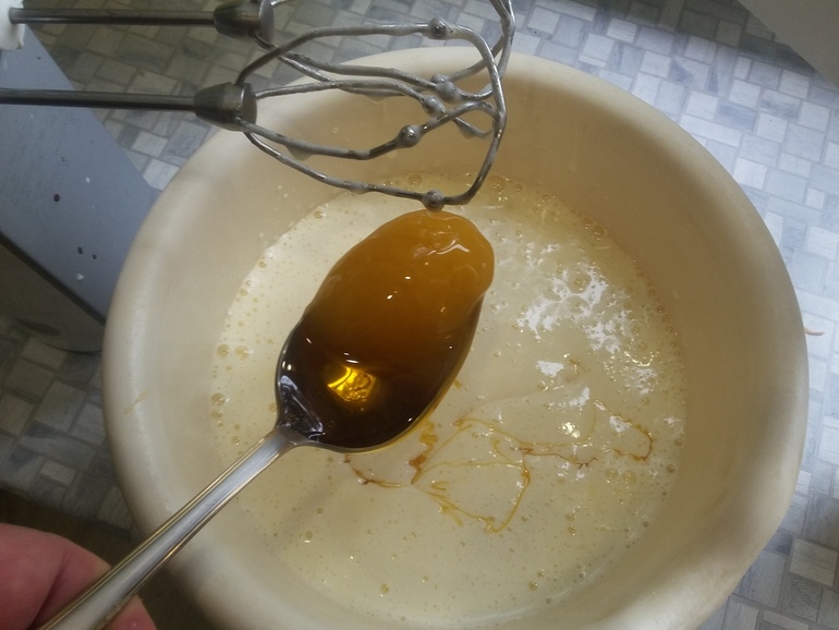 Аккуратно перемешать до однородности (я для насыщенности цвета добавила капельку желтого гелевого пищевого красителя):