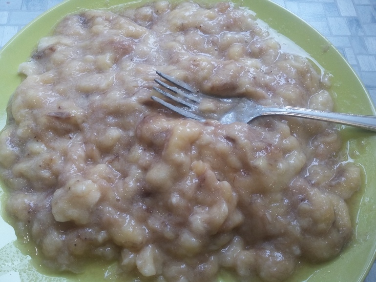 Итак, бананы почистить, размять вилкой: