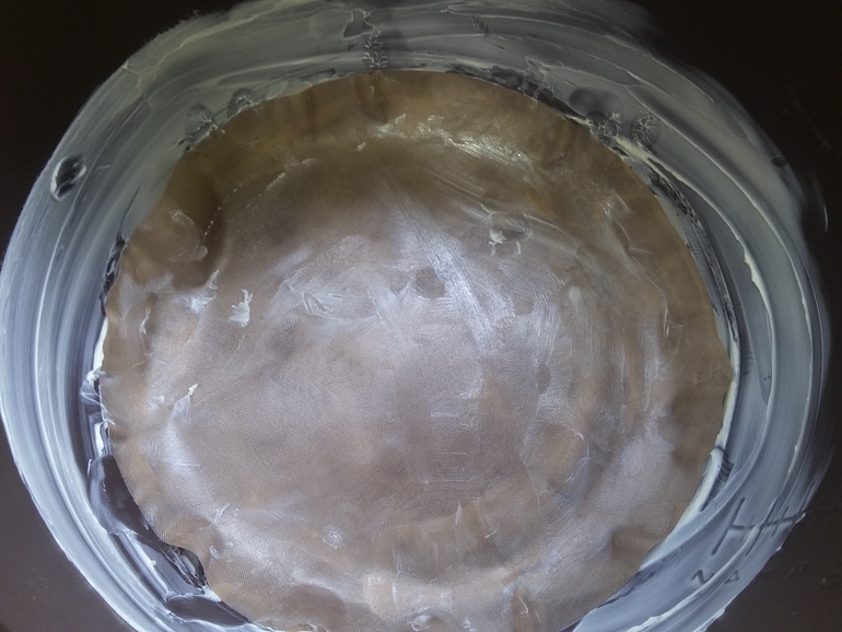 Чашу мультиварки (или форму для запекания) смазать маслом, на дно положить кружок бумаги для выпечки: