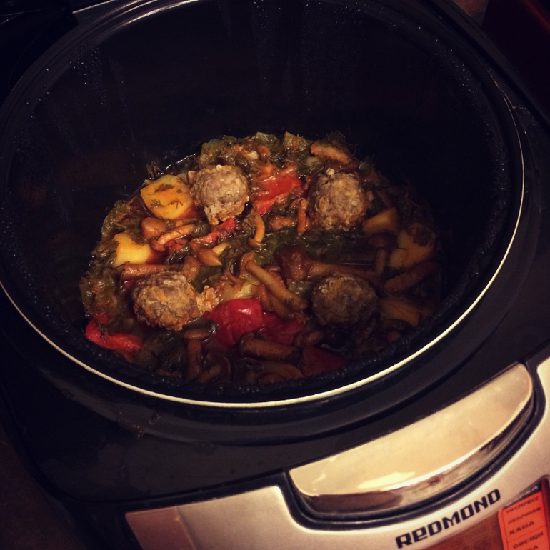 Мед делает мясо очень румяным, с красивым янтарным оттенком, а длительное тушение в мультиварке делает мясо невероятно нежным, кусочки так и таят во рту.