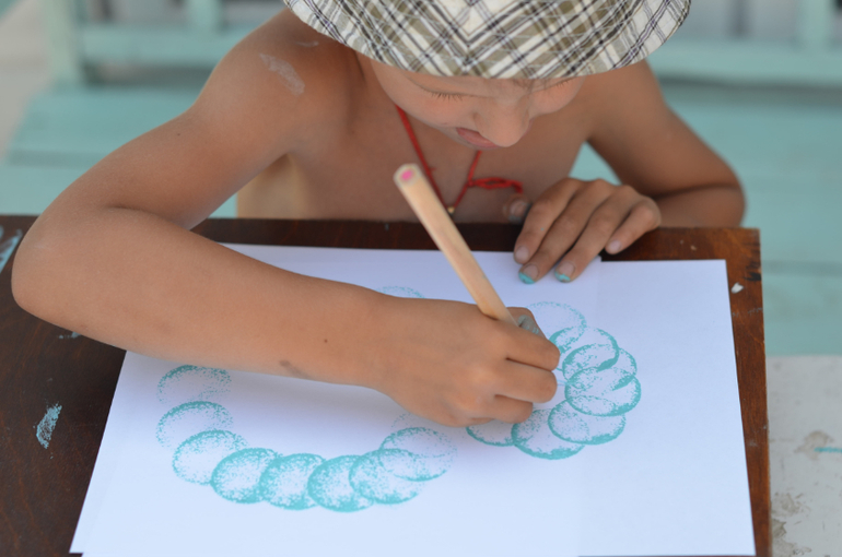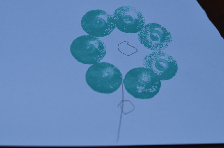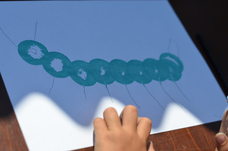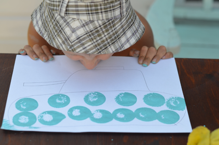 Мы сегодня случайно нашли чем себя поразвлекать!Тыкали валиком кружочки и придумывали на что они похожи!По очереди.