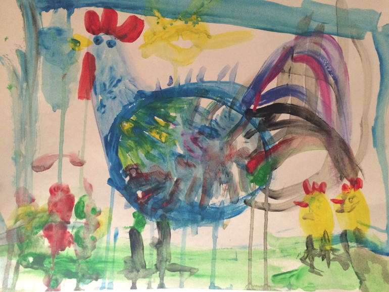 Нарисовал желанный автобус с гармошкой и за Елисея нарисовал животных и трактор с прицепом(хотя,оговаривали грузовичок)