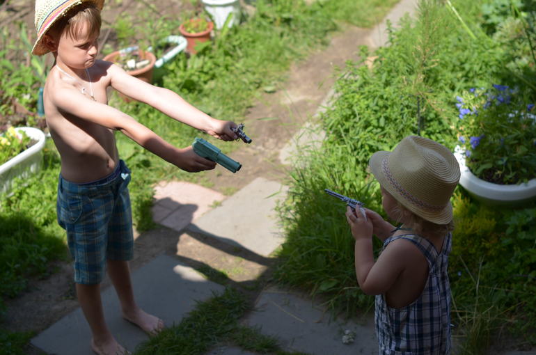Ездила к подружкам в Брянск.Дети с бабушкой и дедушкой паслись в огороде, смотрели Приключения Электроника и ели шпанку из сада.