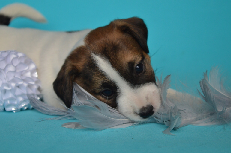 Наша дома спокойная, на улице под настроение. Зато щас с щенками жуть.... Пять джеков в доме это что-то!