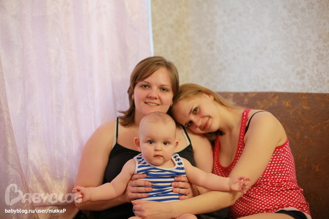 с любимыми тетями) слева тетя Саша(моя старшая сестра, она к нам приходит в гости) а справа тетя Настя (моя младшая сестра, она живет с нами...Данюша ее просто обажает-преобожает)