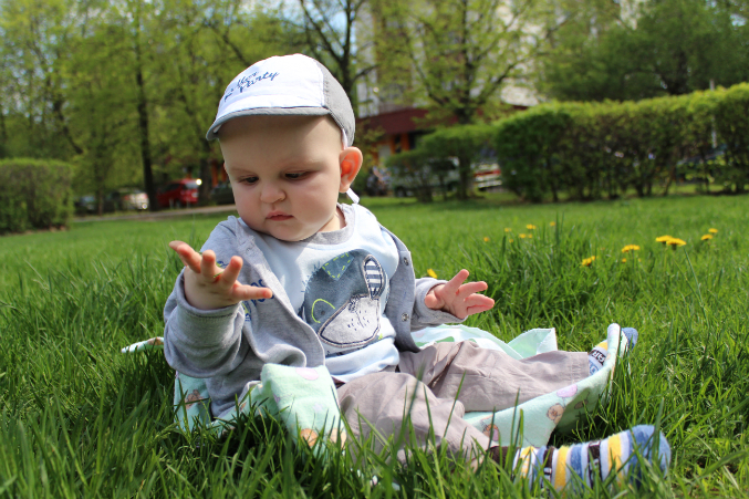 первая в Данюшеной жизни зеленая травка))