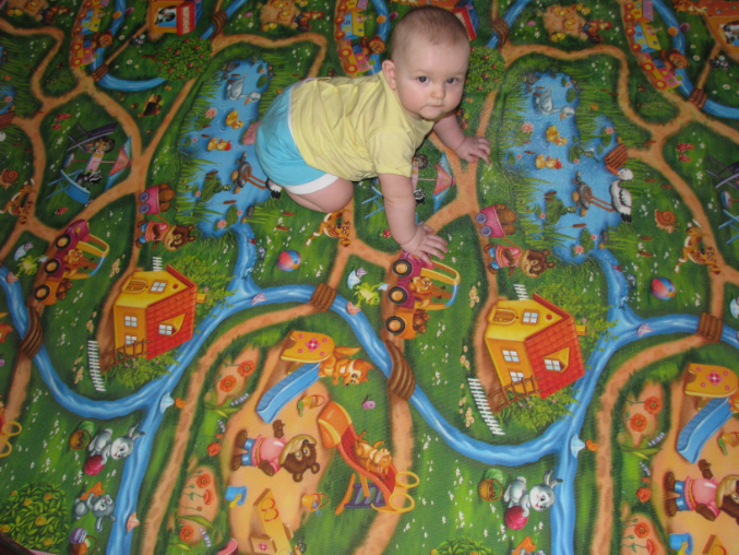 Данюша стал вставать на четвереньки раскачиваться на них и пытаться ползти..то назад то вперед..пока не очень получается но все же))) и фото