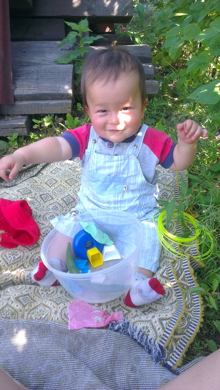 Последние недели в Иркутске пролетели незаметно. Каждый день похож на предыдущий, но в этом и все прелесть - просыпаемся, завтракаем, гуляем, спим, обедаем и т.д. Деньки были солнечные, много времени проводили на улице. Да как не гулять? Павла садила на коврик, клала перед ним несколько игрушек, а сама усаживалась рядом и вышивала. Когда ему надоедали игрушки, он подползал к травке и нюхал всякие цветочки - прелесть, а не ребенок!