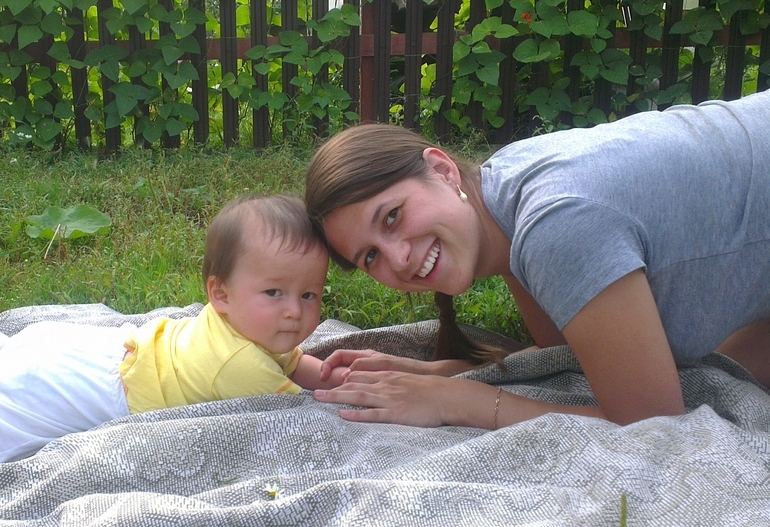 Последние недели в Иркутске пролетели незаметно. Каждый день похож на предыдущий, но в этом и все прелесть - просыпаемся, завтракаем, гуляем, спим, обедаем и т.д. Деньки были солнечные, много времени проводили на улице. Да как не гулять? Павла садила на коврик, клала перед ним несколько игрушек, а сама усаживалась рядом и вышивала. Когда ему надоедали игрушки, он подползал к травке и нюхал всякие цветочки - прелесть, а не ребенок!