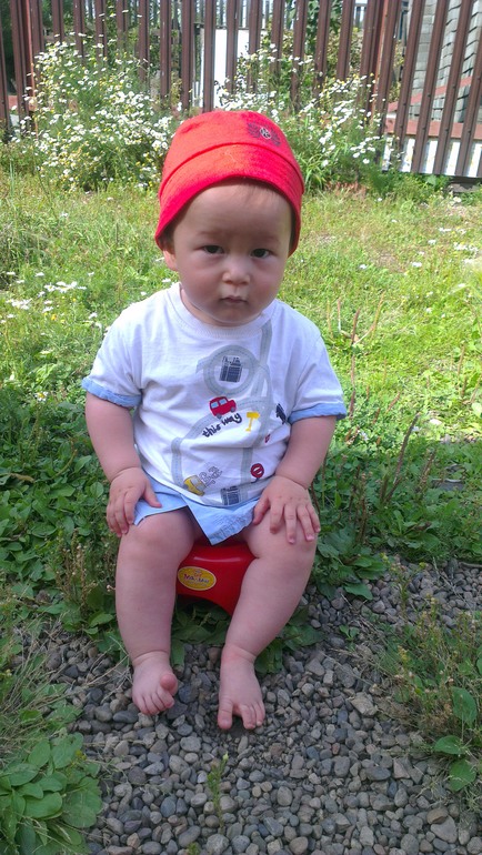 По дому носился - не угнаться. Конечно, я утрирую - быстро на животе не уползешь, но по другому Паша так и не научился ползать)) зато научился садится (наконец-то!) задом))) все не как у людей!) из положения на животе встает на коленки и пятится. Потом плюхается попой на пол. Сначала не очень получалась, да и не всегда можно определить, где именно он в конце концов приземлится, но да ладно)) Периодически клевал носом об пол, сейчас уже меньше)