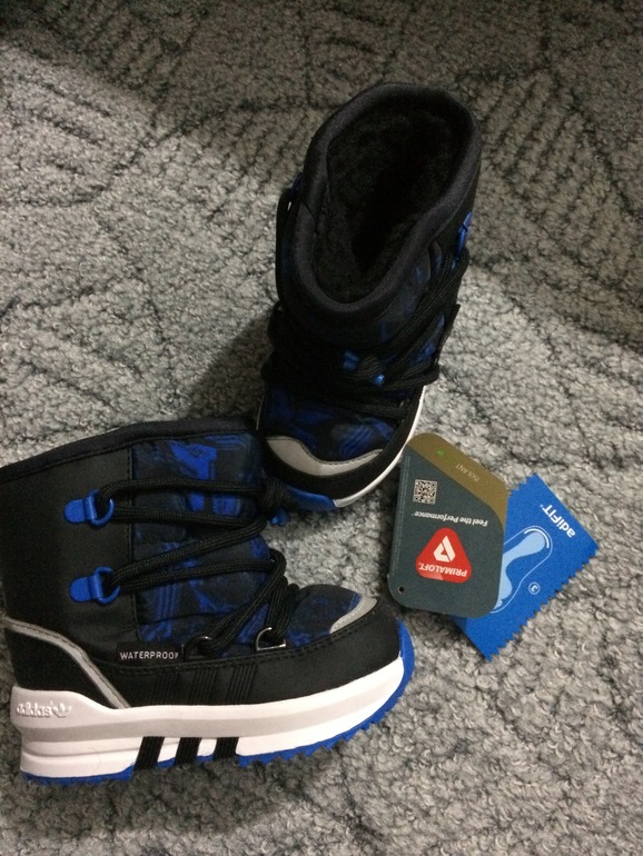 Луноходы Adidas 22 размер новые. Исключительное тепло обеспечивает технология PrimaLoft® и подкладка из искусственного меха. Водонепроницаемое покрытие верха надежно защищает от снега. Благодаря удобной шнуровке ботинки можно плотно зафиксировать на ногах. Водонепроницаемый верх Подкладка из искусственного меха Технологичный утеплитель PrimaLoft® эффективно согревает даже во влажном состоянии Усиленная носочная и пяточная часть Пористая стелька OrthoLite® с антимикробным покрытием и фольгированной обратонй стороной разработана специально для детской обуви, отводит влагу с поверхности кожи, поддерживая оптимальный микроклимат Цепкая резиновая подошва ТЕМПЕРАТУРНЫЙ РЕЖИМ ОТ -5 до -40